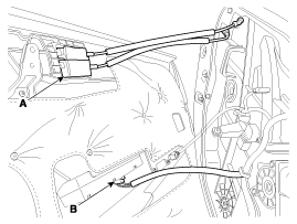 Снимите разъем удлинителя передней двери (В).