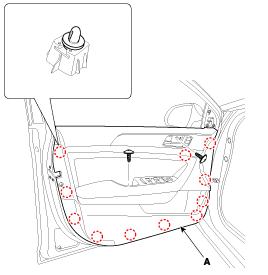 Снимите внутреннюю ручку передней двери (A).