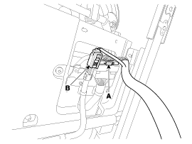 Отсоедините главный разъем (А), разъем боковой подушки безопасности (В), разъем замка переднего ремня безопасности (С).