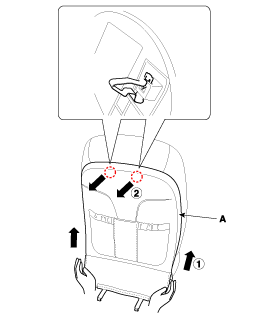 Снимите обивку спинки переднего сиденья (А) с рамы спинки переднего сиденья.
