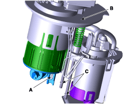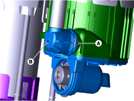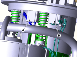 Отсоедините разъем проводки электронасоса (А) и разъем датчика уровня топлива (В).