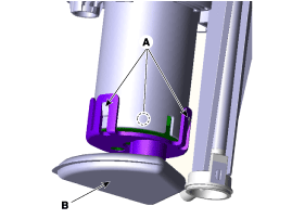 Снимите головку в сборе (B) после снятия фиксирующего зажима амортизирующей трубы (C).