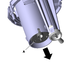 Снимите двигатель топливного насоса (А) в направлении, указанном стрелкой.