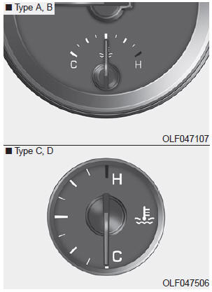 Если указатель датчика перемещается за пределы области нормального диапазона в сторону положения «H», указывает на перегрев, который может повредить двигатель.