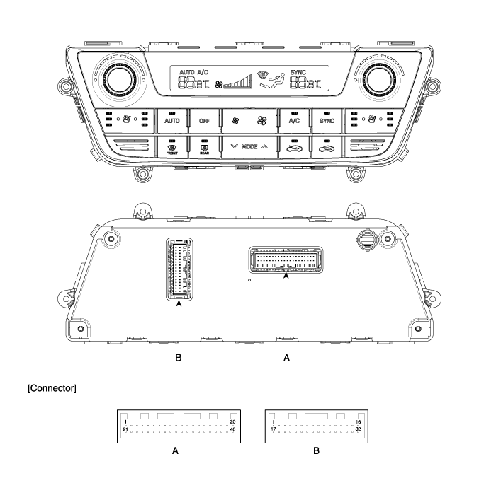 Hyundai Sonata LF 2014-2019 Руководство по ремонту / Отопление, вентиляция, кондиционирование / Контроллер / Блок управления отопителем и кондиционером (DATC) Компоненты и расположение компонентов