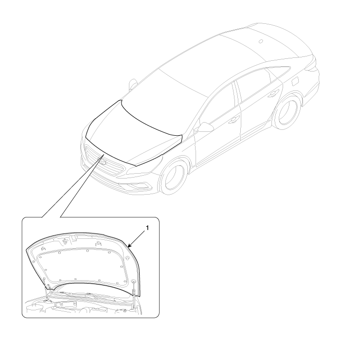 Hyundai Sonata LF 2014-2019 Руководство по ремонту / Кузов (внутри и снаружи) / Капюшон / Компоненты капота в сборе и расположение компонентов