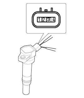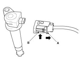 Отсоедините разъем катушки зажигания (А).
