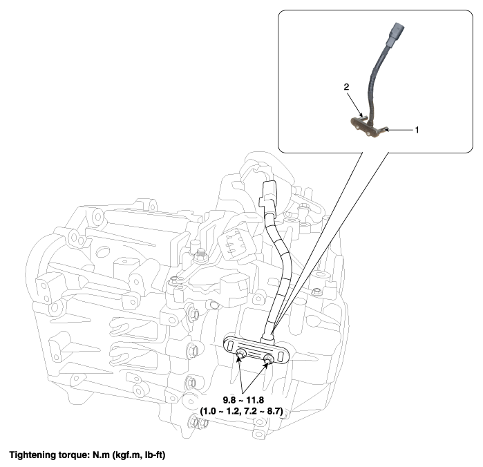 Hyundai Sonata: система управления коробкой передач с двойным сцеплением / датчик частоты вращения входного вала 1 Компоненты и расположение компонентов
