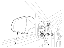 Ослабив крепежные гайки, снимите наружное зеркало заднего вида (В).