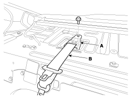 Ослабив крепежный болт натяжителя (А), снимите задний центральный ремень безопасности (В).