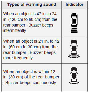 Система помощи при парковке сзади помогает водителю при движении задним ходом. транспортное средство звуковым сигналом, если какой-либо объект обнаружен на расстоянии 50 дюймов (120 см) позади автомобиля.