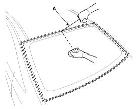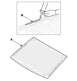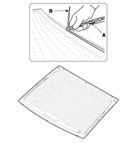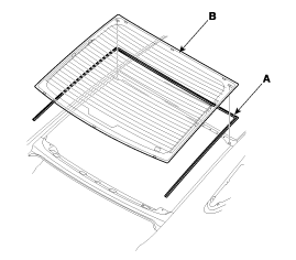 Снимите ленту с молдинга заднего стекла (А) и установите молдинг на стекло заднего стекла (В).