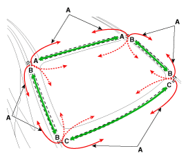 Отрежьте герметик на (A-A), (B-B), (C-C), потянув струну (A) влево и вправо.