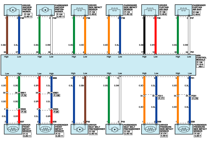 Передний датчик бокового удара, Driver-Low (-)