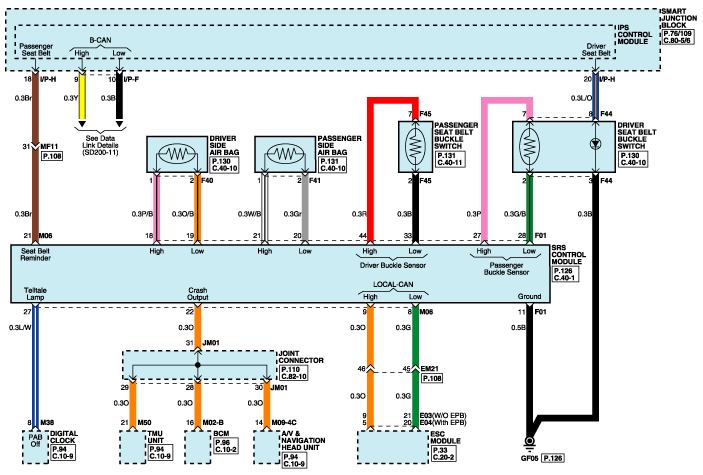 Передний датчик замка ремня безопасности, Driver-Low(-)