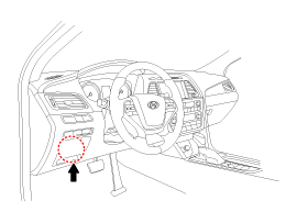 Подсоедините DLC-кабель GDS к разъему канала передачи данных (16 контактов) на нижней панели подушки безопасности со стороны водителя, включите питание GDS.