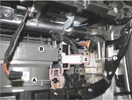 Снимите блок смарт-ключа (B), отсоединив разъемы (A) и ослабив болт и гайку.