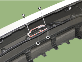 Снимите антенну заднего бампера (В), предварительно отсоединив разъем (А) и ослабив гайки крепления.
