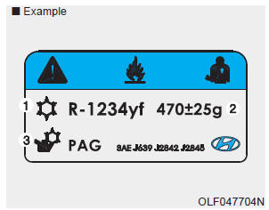 Фактическая этикетка хладагента системы кондиционирования воздуха в автомобиле может отличаться от иллюстрация.