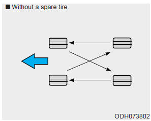 При перестановке шин проверяйте их на неравномерный износ и повреждения. Ненормальный износ обычно из-за неправильного давления в шинах, неправильной установки колес, разбалансировки колес, резкое торможение или резкий поворот. Ищите неровности или выпуклости на протекторе или сбоку шин. Замените шину, если вы обнаружите одно из этих условий. Замените шину если видна ткань или шнур. После поворота обязательно привести передние и задние давление в шинах в соответствии со спецификацией и проверить затяжку гаек крепления (правильный момент затяжки 79-94 lb.ft [11-13 кг.м]).