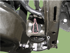 Отсоедините разъем датчика скорости вращения колеса (А).