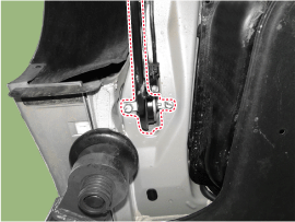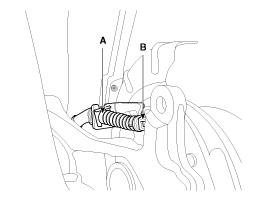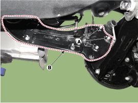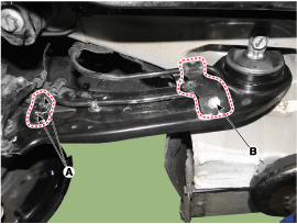 Ослабьте гайку крепления продольного рычага (А) и снимите продольный рычаг (В).