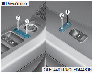 Если смарт-ключ находится в автомобиле и открыта какая-либо дверь, двери не замок, даже если нажата кнопка блокировки (1) выключателя центрального замка двери.