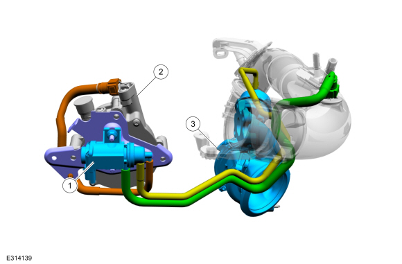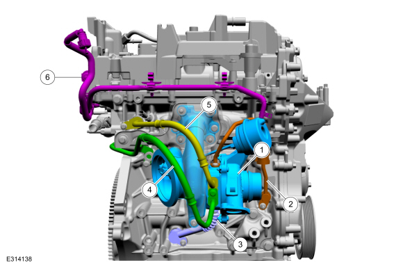 Ford Escape: Заправка и управление топливом — Турбокомпрессор — 1,5 л EcoBoost (132 кВт/180 л. с.) — I3 (Y1) / Описание и работа — Турбокомпрессор — Расположение компонентов