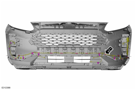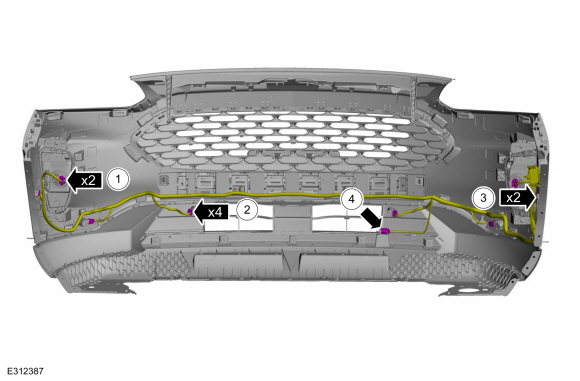 Отделите направляющие жгута, фиксаторы жгута и снимите жгут накладки переднего бампера.