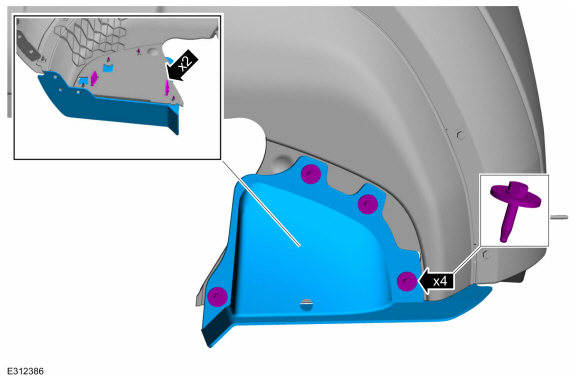 Удалите нажимные штифты, освободите выступы и снимите защитную накладку переднего бампера.