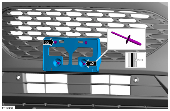 Просверлите заклепки и снимите кронштейн номерного знака.