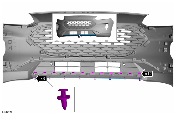 Ford Escape: Бамперы / Разборка и сборка - Накладка переднего бампера