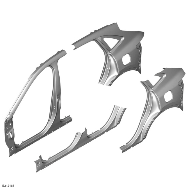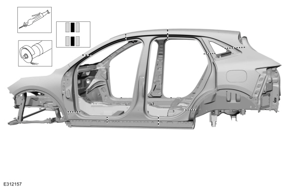 УВЕДОМЛЕНИЕ: Не выполняйте ремонт боковых секций кузова в местах дверная петля, ремень безопасности или точки крепления ответной планки. Сварка в пределах 50 мм (1,96 дюйма) дверных петель или ответных планок могут нарушить целостность конструкции при столкновении.