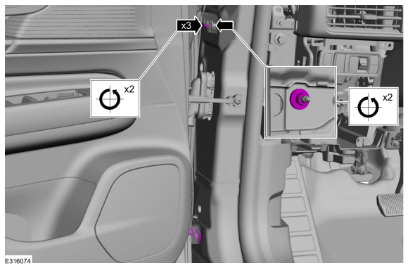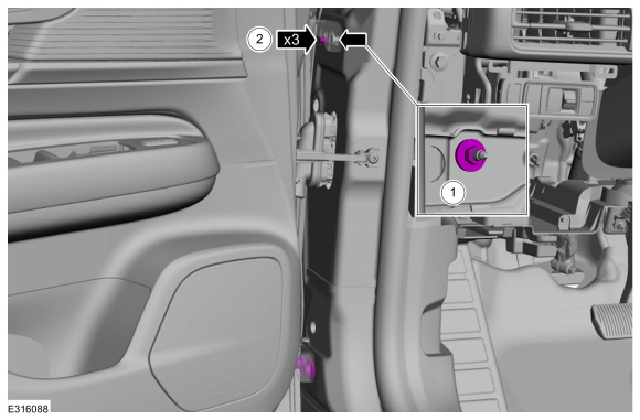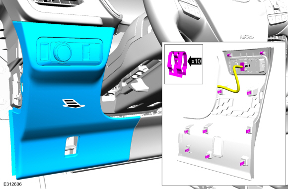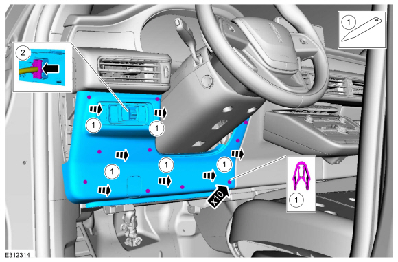 1. Освободите зажимы и снимите левую панель отделки. Отсоедините электрический разъем.