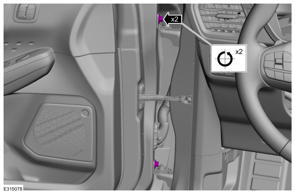 Отведите уплотнитель передней двери в сторону, освободите защелки и снимите панель отделки панели приборов.