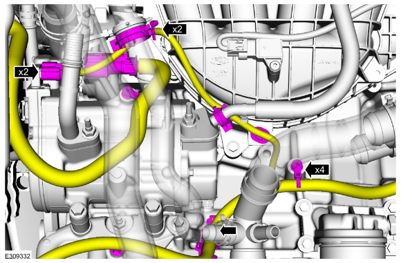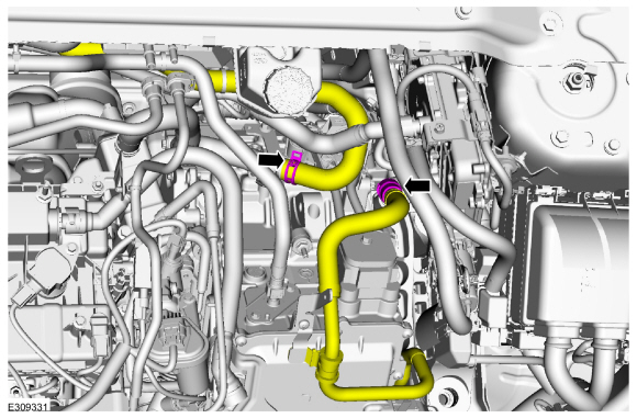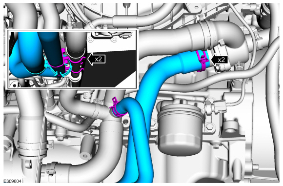 Установите шланги охлаждающей жидкости и штифтовые фиксаторы.