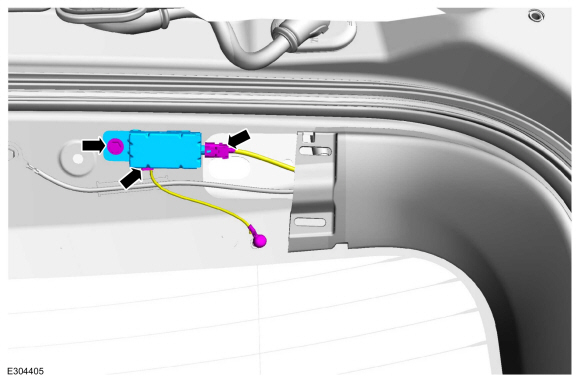 Ford Escape: Информационно-развлекательная система – Общая информация / Снятие и установка – Антенный усилитель AM/FM1