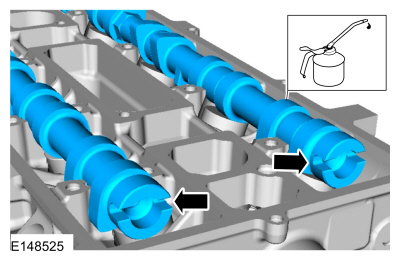 Смажьте распределительные валы и шейки распределительных валов чистым моторным маслом и установите распределительные валы.