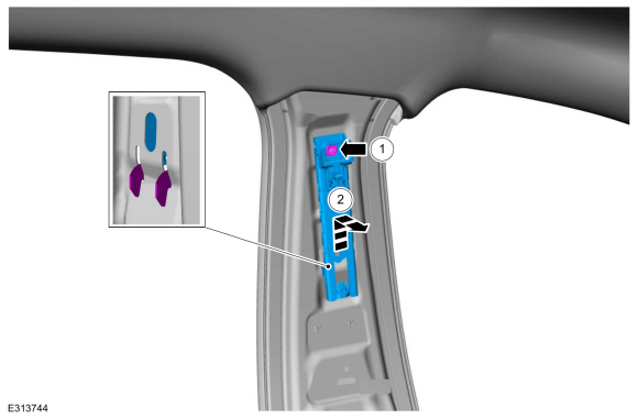 См.: Пряжка переднего ремня безопасности (501-20A Системы ремней безопасности, Снятие и установка).