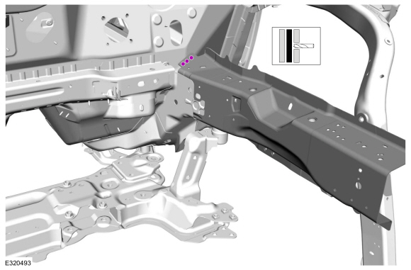 ПРИМЕЧАНИЕ: Заводские сварные швы могут быть заменены сопротивлением или металлом. Сварка электродами в среде инертного газа (MIG). Сварка сопротивлением не может быть размещена непосредственно над исходным местоположением. Они должны располагаться рядом с оригиналом. расположение и соответствие заводским сварным швам по количеству. Металлическая заглушка для инертного газа (MIG) сварные швы должны соответствовать заводским сварным швам как по расположению, так и по количеству.
