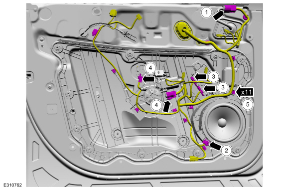 Отсоедините электрические разъемы и освободите фиксаторы жгута проводов.