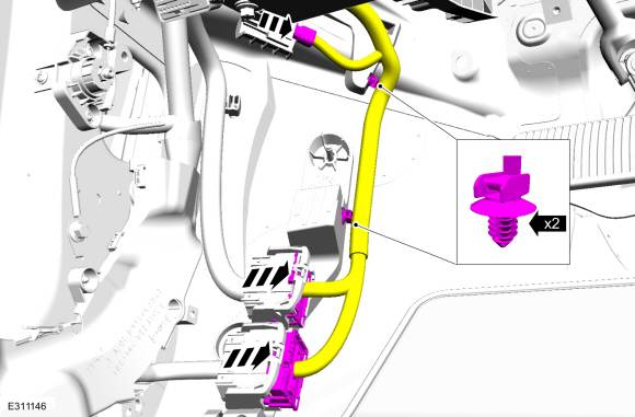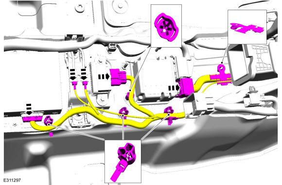 Отсоедините электрические разъемы и снимите фиксаторы жгута проводов.