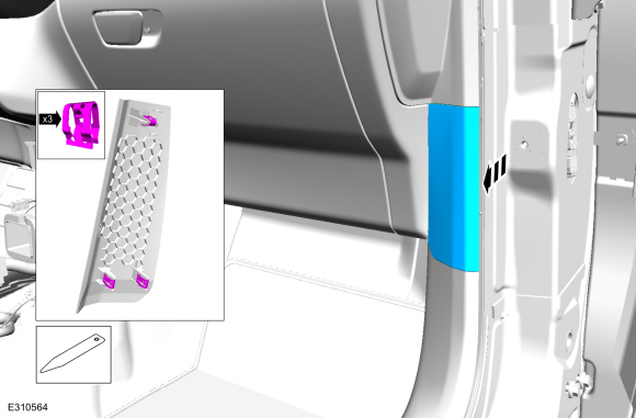 См.: Панель обивки передней стойки (501-05 Внутренняя отделка и украшения, Снятие и установка).