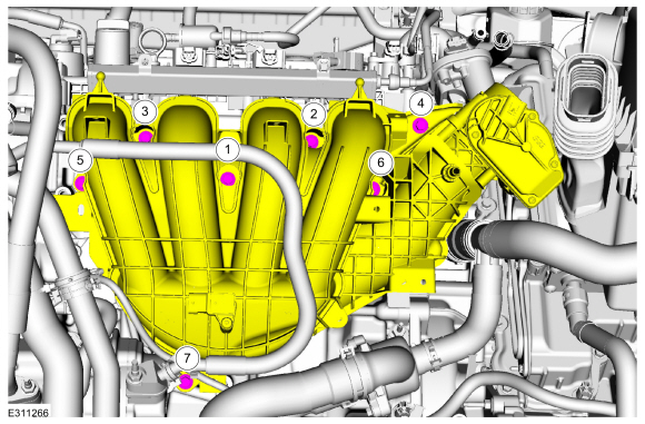 Ford Escape: Двигатель / Снятие и установка — впускной коллектор