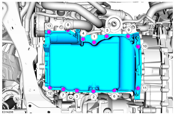 Установите масляный насос и болты. Затяните в указанной последовательности в 2 этапа.