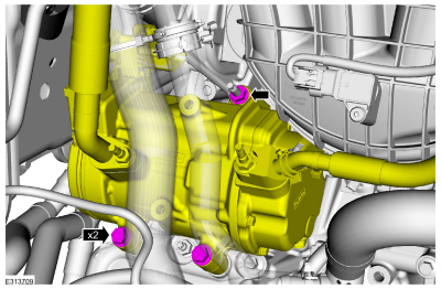 Отсоедините электрические разъемы и штифтовые фиксаторы компрессора кондиционера.