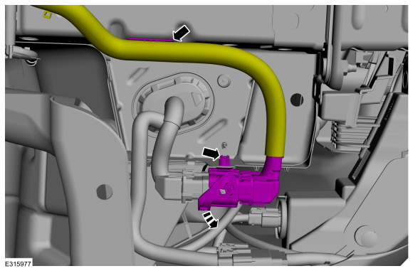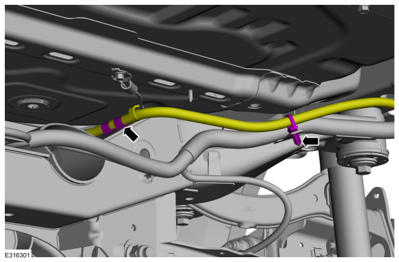 Снимите фиксаторы шланга и отложите вентиляционный шланг в сторону от заднего подрамника.