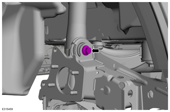 Снимите и выбросьте болт крепления переднего нижнего рычага к поворотному кулаку.