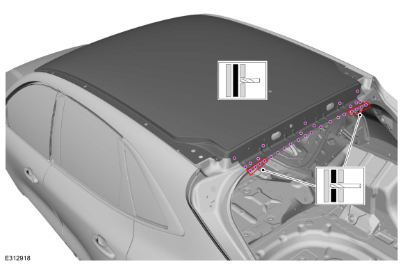 Ford Escape: Ремонт листового металла крыши / Снятие и установка - панель крыши