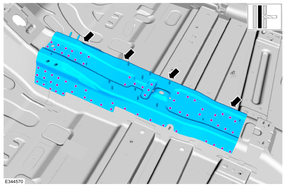 ПРИМЕЧАНИЕ: Заводские сварные швы могут быть заменены сопротивлением или металлом. Сварка электродами в среде инертного газа (MIG). Сварка сопротивлением не может быть размещена непосредственно над исходным местоположением. Они должны располагаться рядом с оригиналом. расположение и соответствие заводским сварным швам по количеству. Металлическая заглушка для инертного газа (MIG) сварные швы должны соответствовать заводским сварным швам как по расположению, так и по количеству.